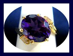 the diamonds are actually a lot whiter and brighter. It was a difficult ring to photograph, as the diamonds set low, right atop the finger, and the amethyst is a pretty good-sized, belly-cut stone. Your cost $440.00 |