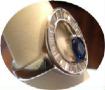 Royal blue sapphire and diamond baguettes - gorgeous! This contemporary 1/2 ct diamond baguette ring has a lovely royal blue Ceylon sapphire, also 1/2 ct, framed in an open setting. There is little lovelier, than a ring that shows skin through the mounting, so the gemstone looks like it is setting right on the finger. One beautiful design, sure to please you for years to come! One of our loveliest rings! The sapphire just jumps out at you, and the diamonds are exquisite... Your cost $1109.00 |