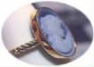 white porcelain cameo ring. Unlike the old-fashioned shell cameos, this porcelain lady will endure long years of wear. The "classic" cameos from an age gone by, show major signs of wear with just moderate use. Before long, the lovely details on the ring are worn off. Porcelain cameos, and agate cameos will last a lifetime, given a minimal amount of care. This lady is about 18 x 13 mm, and set in a 14KT yellow gold bezel with fluting on the side of the ring. A classic for any occasion! Your cost $280.00 |